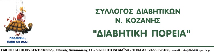 Ο Σύλλογος Διαβητικών Ν. Κοζάνης «ΔΙΑΒΗΤΙΚΗ ΠΟΡΕΙΑ», καλεί